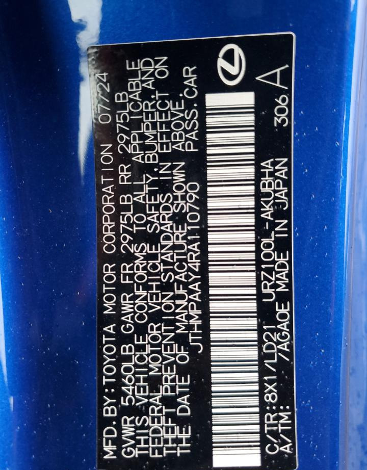 VIN:JTHMPAAY4RA110790