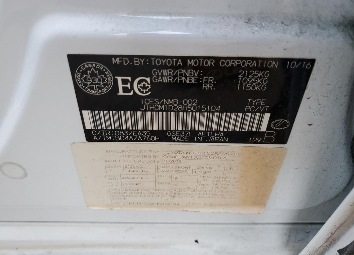 VIN:JTHCM1D28H5015104