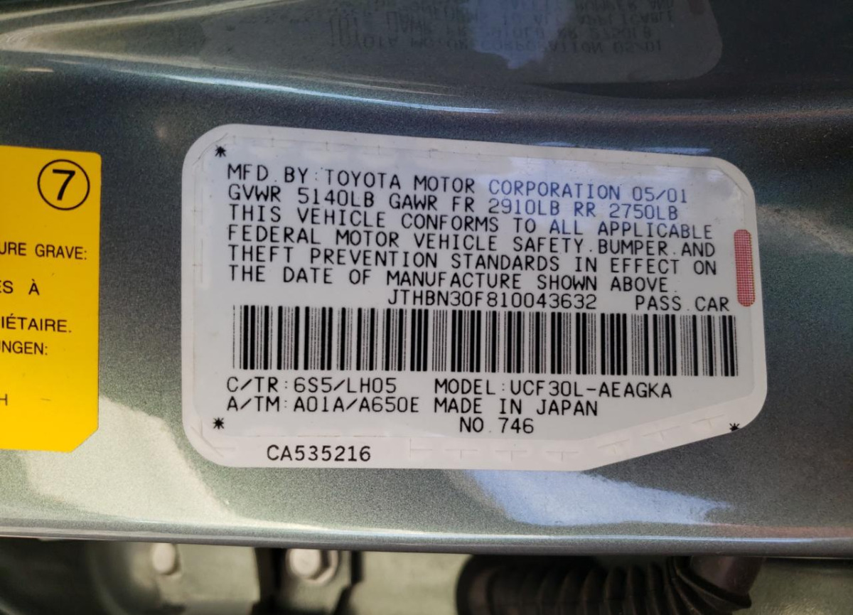 VIN:JTHBN30F810043632