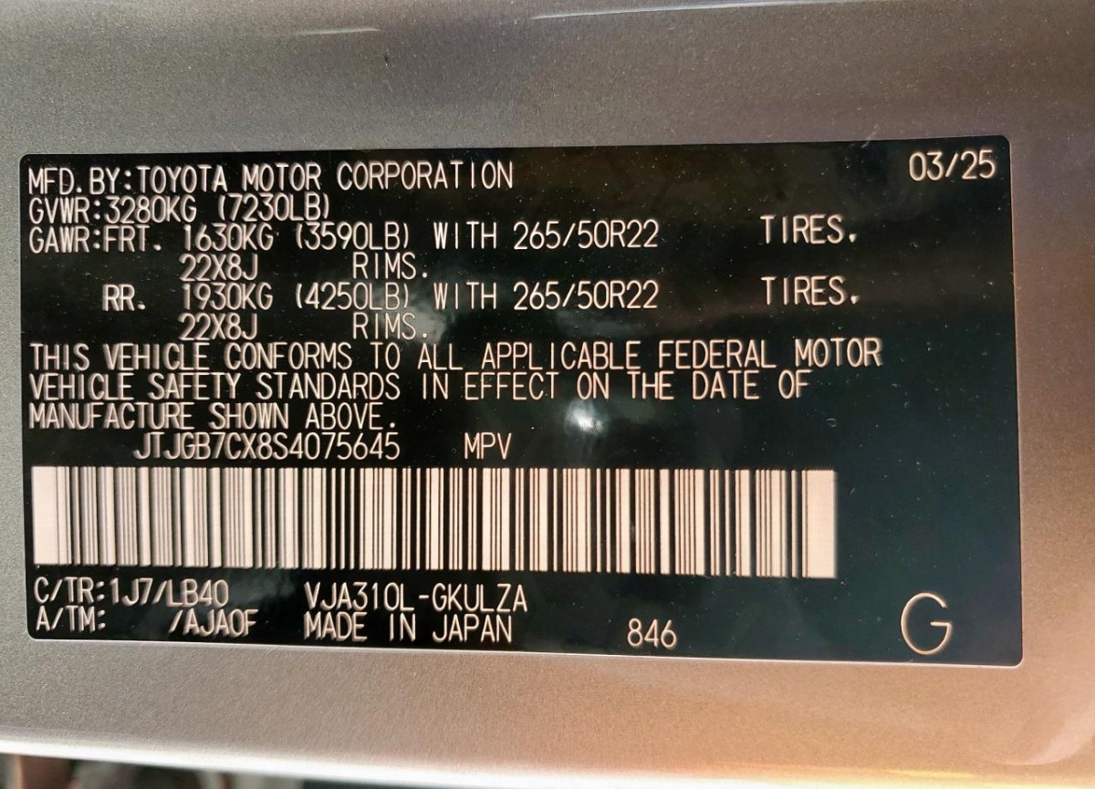 VIN:JTJGB7CX8S4075645