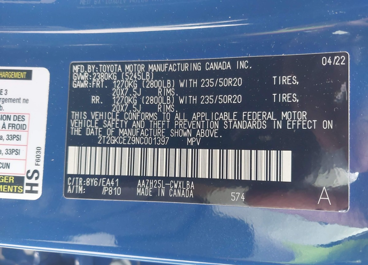 VIN:2T2GKCEZ9NC001397