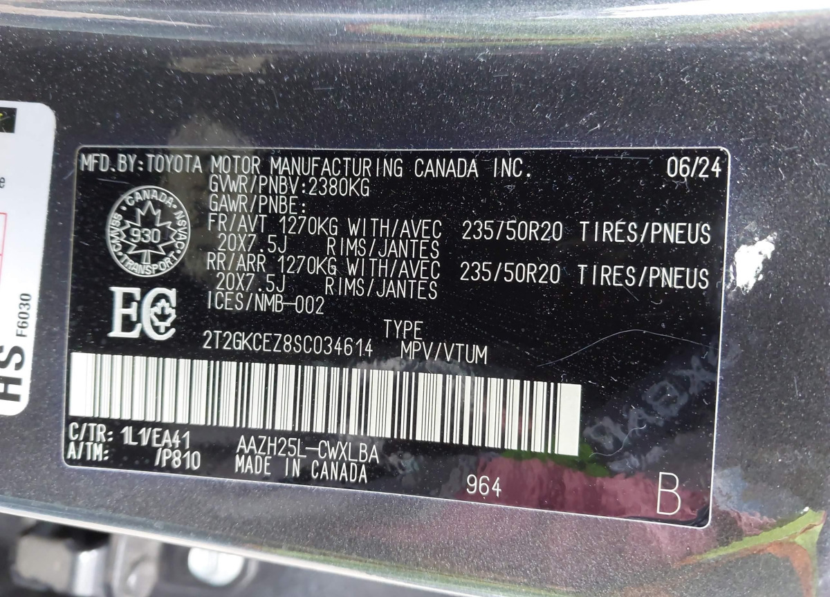• VIN: 2T2GKCEZ8SC034614