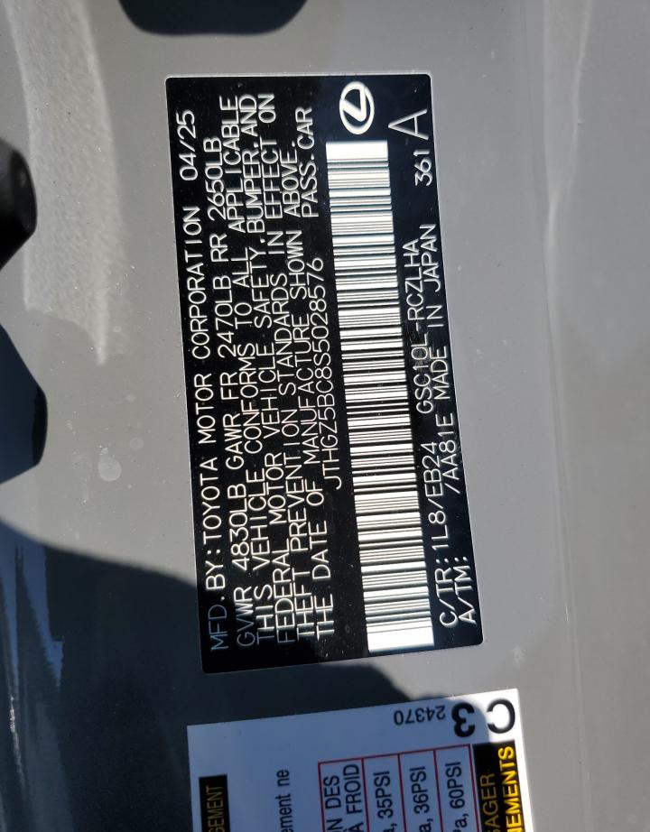 • VIN: JTHGZ5BC8S5028576