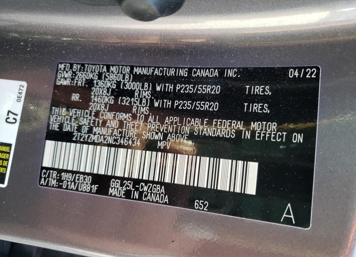 VIN:2T2YZMDA2NC346434