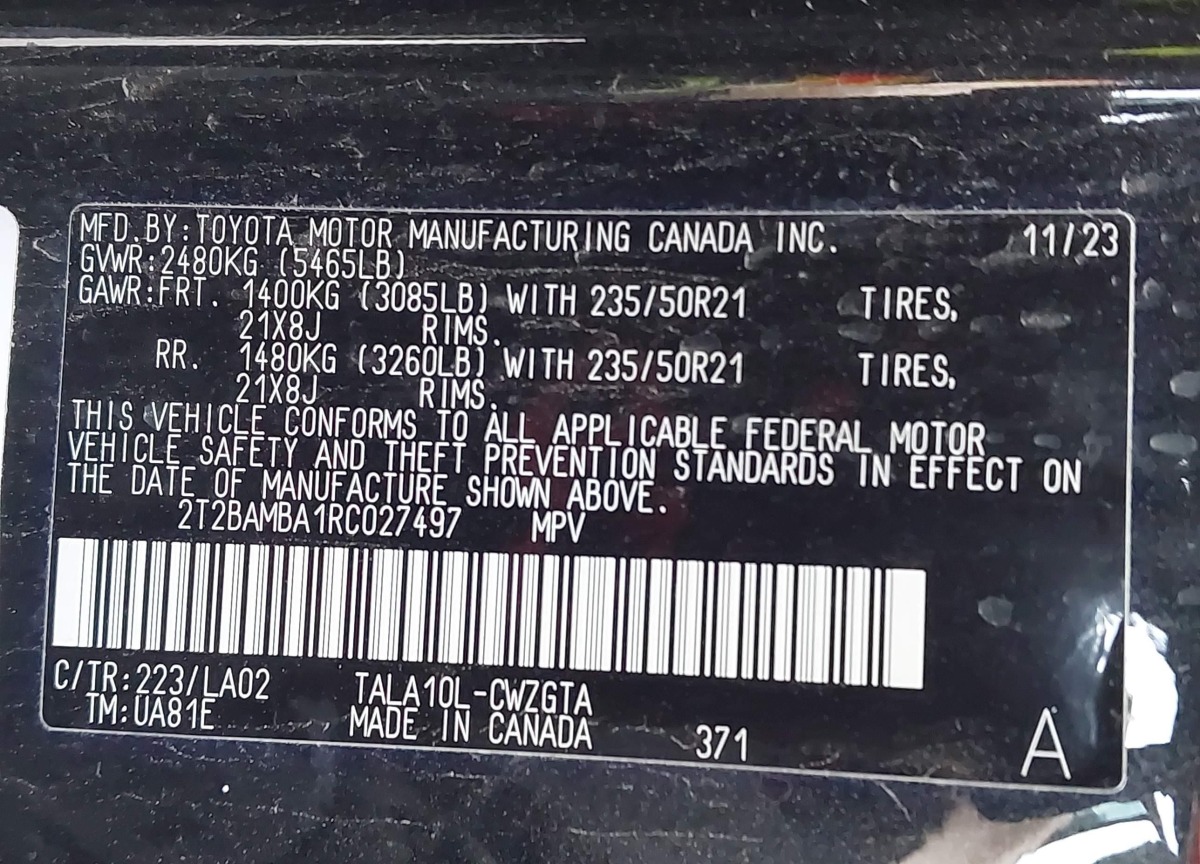 VIN:2T2BAMBA1RC027497
