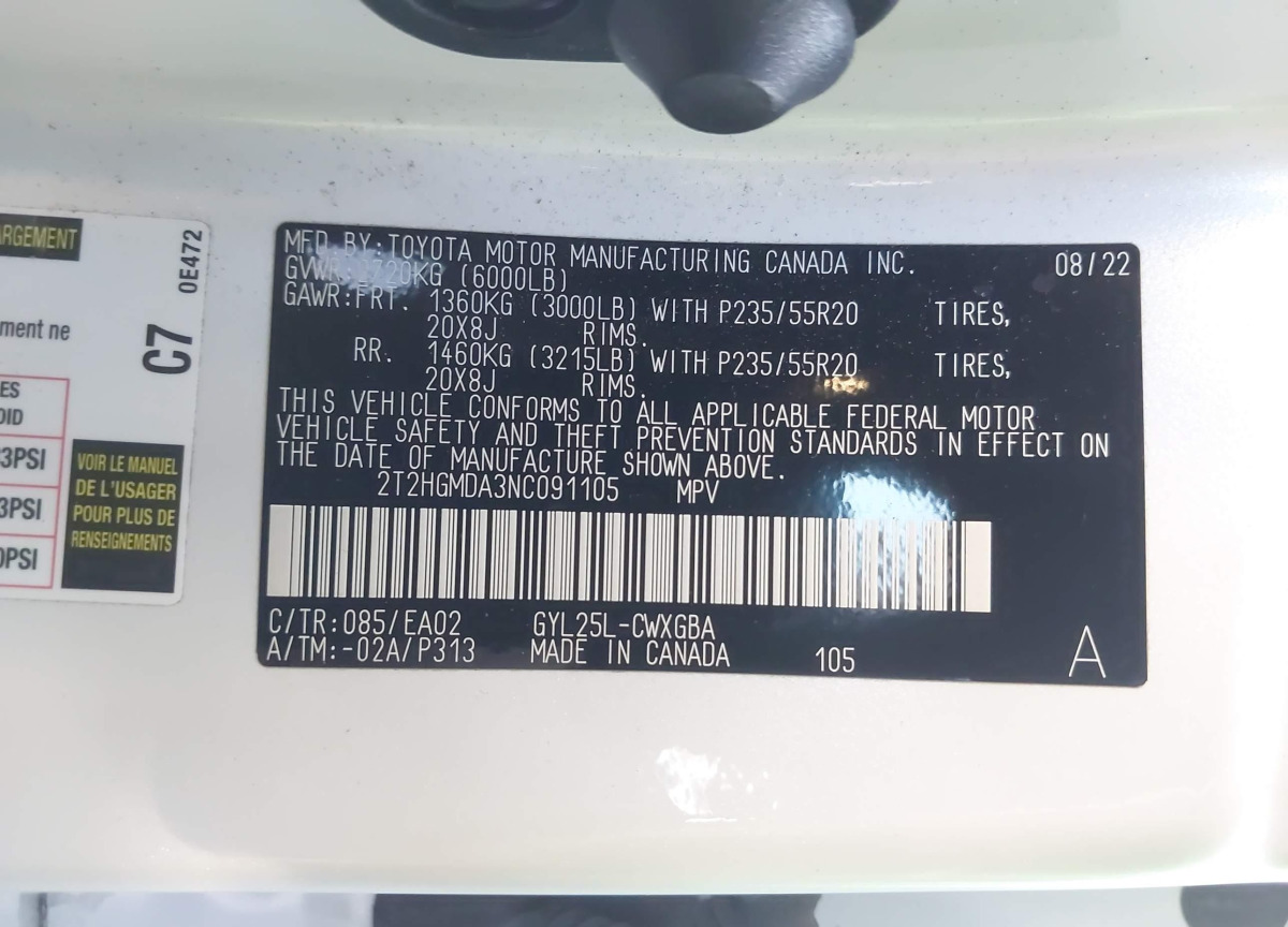 VIN:2T2HGMDA3NC091105