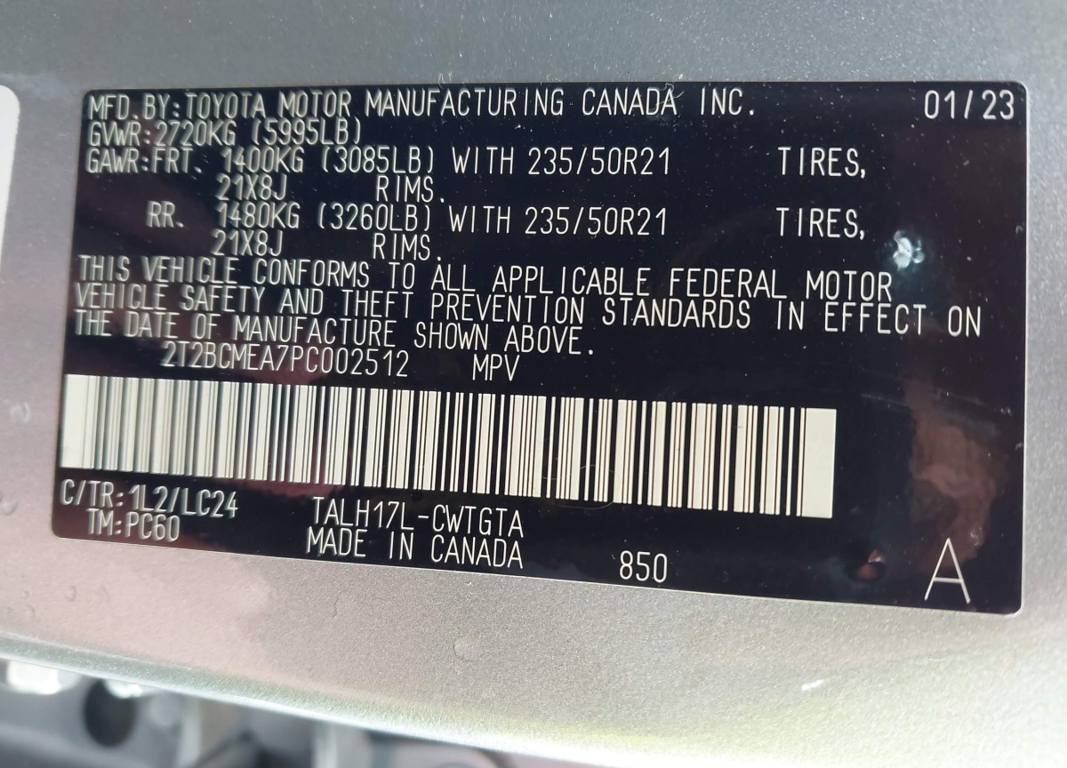 • VIN: 2T2BCMEA7PC002512