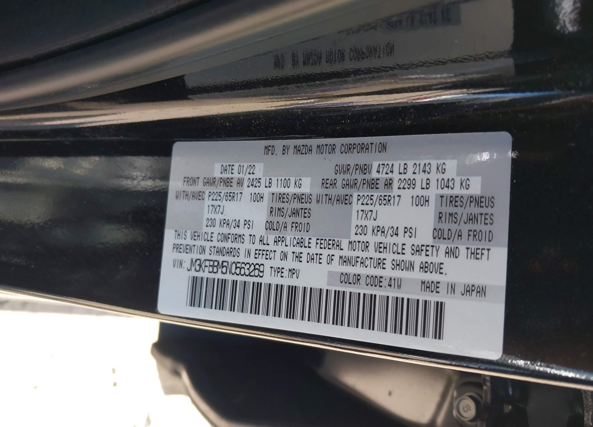 JM3KFBBM5N0563269 Mazda CX-5 2022 Black – history, photos, price