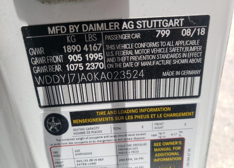 VIN:WDDYJ7JA0KA023524