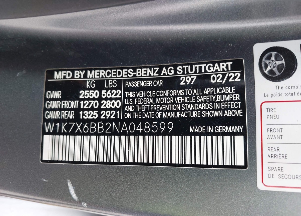 VIN:W1K7X6BB2NA048599