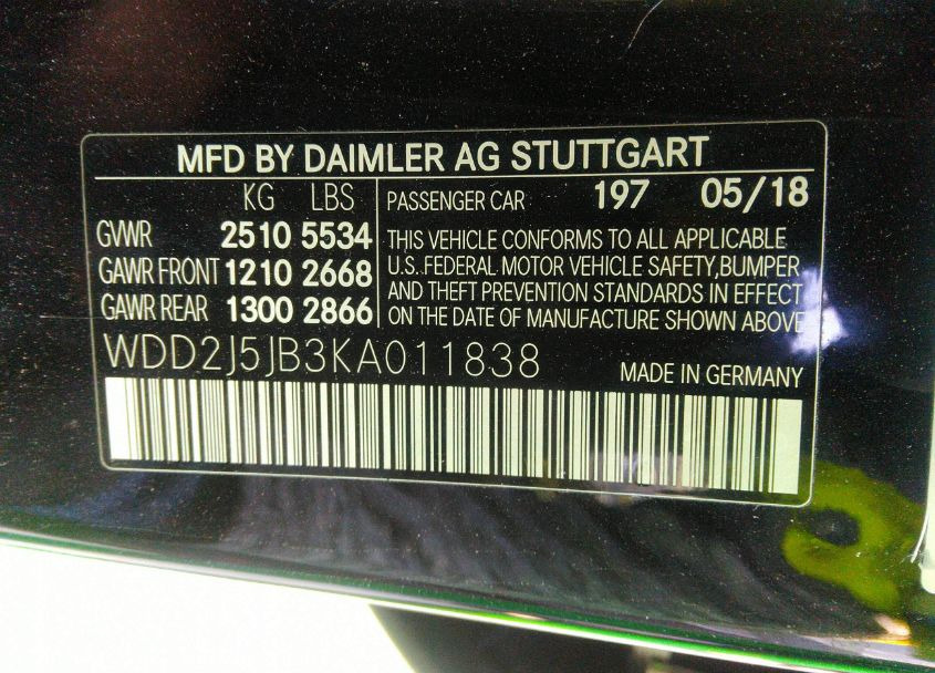 VIN:WDD2J5JB3KA011838