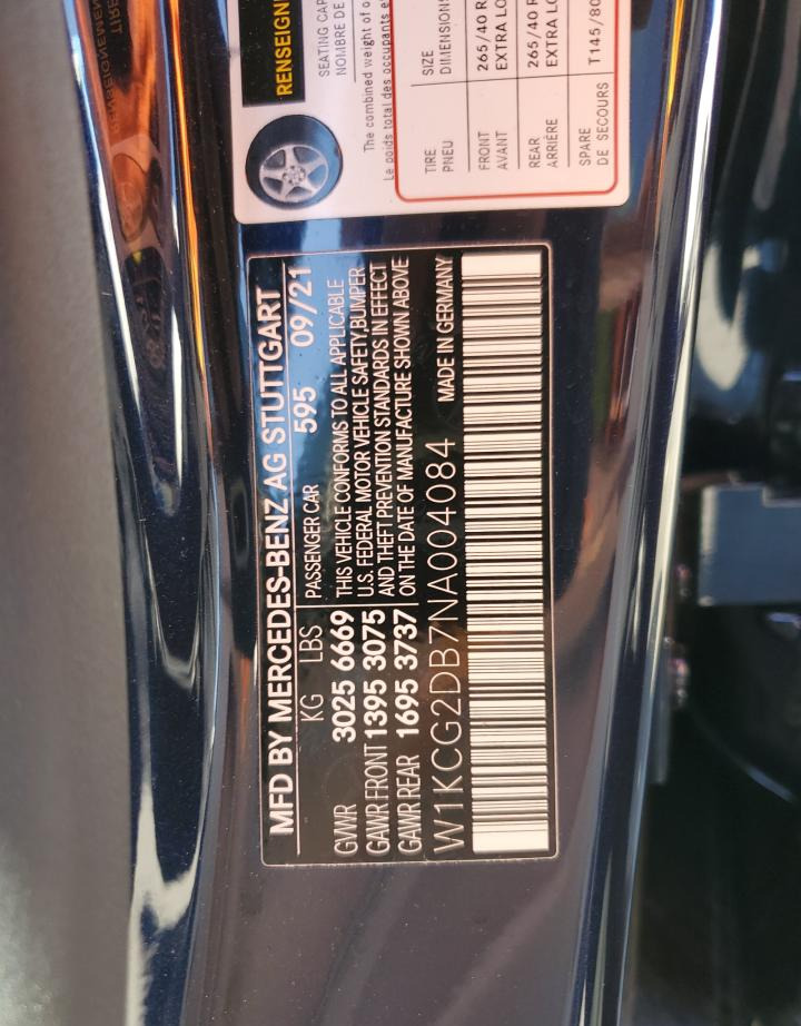 VIN:W1KCG2DB7NA004084