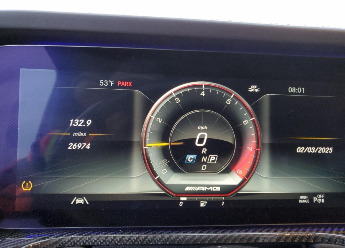 The Mercedes-Benz G-Class 2022 Blue is equipped with a 4.0l 8 engine. This power unit is known for its efficiency and reliability, and it is part of modern generation of engines designed to balance performance with fuel economy. According to the auction data, the vehicle was registered with only 26974 of mileage at the time of sale.