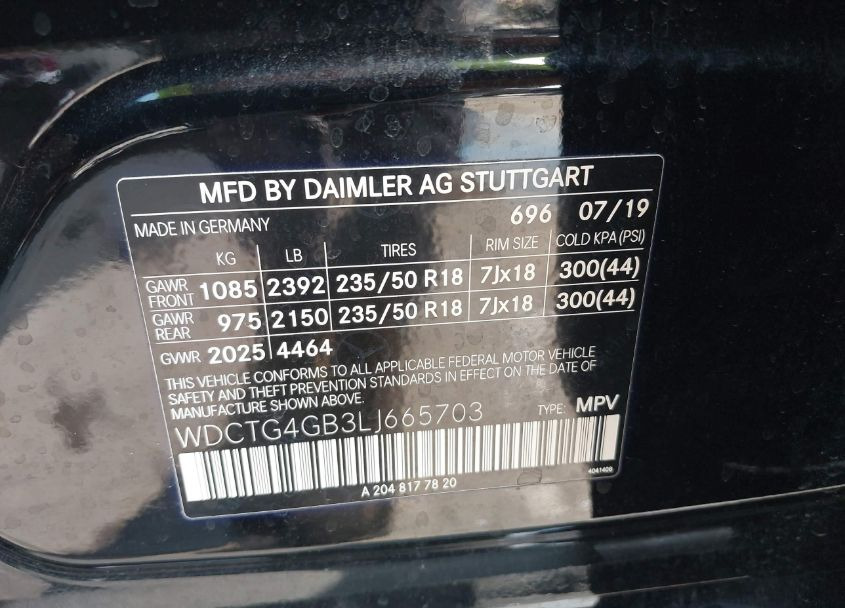 VIN:WDCTG4GB3LJ665703