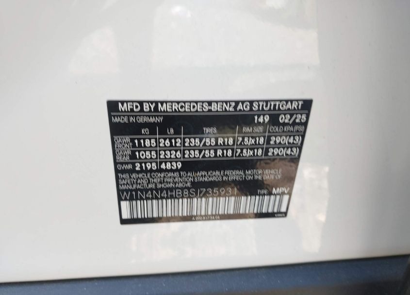 VIN:W1N4N4HB8SJ735931