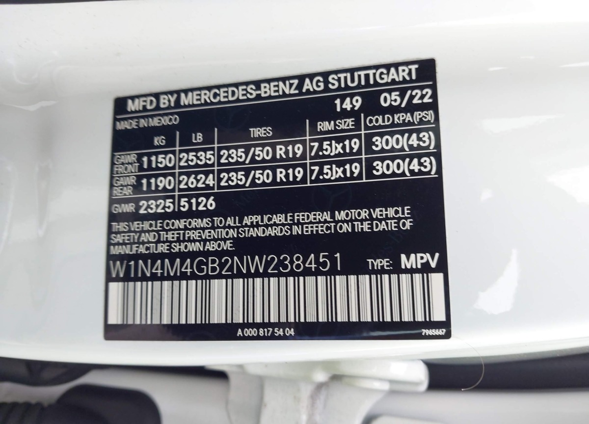 VIN:W1N4M4GB2NW238451