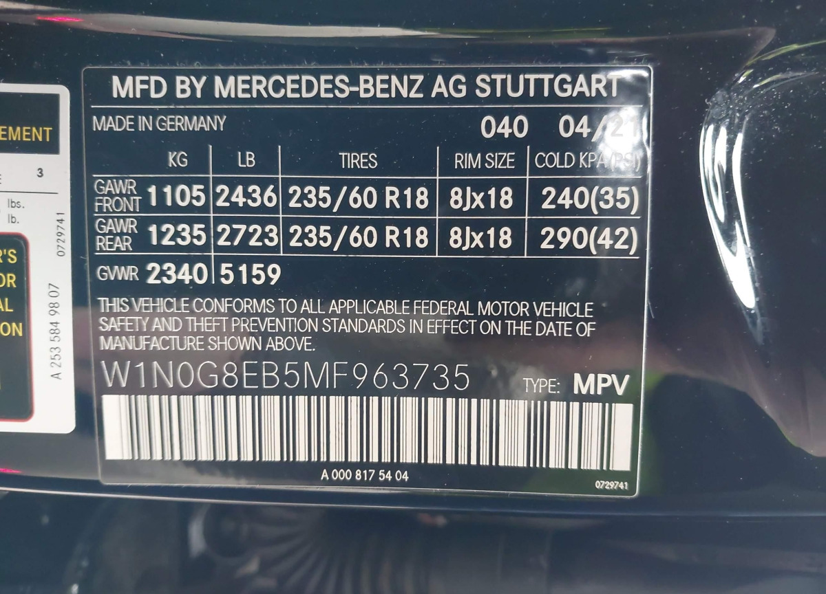 VIN:W1N0G8EB5MF963735