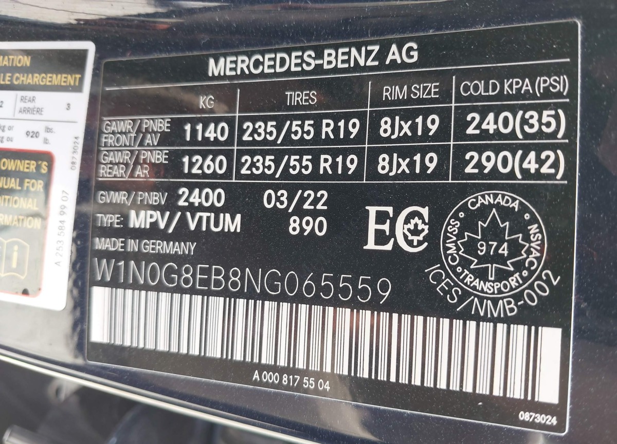 VIN:W1N0G8EB8NG065559