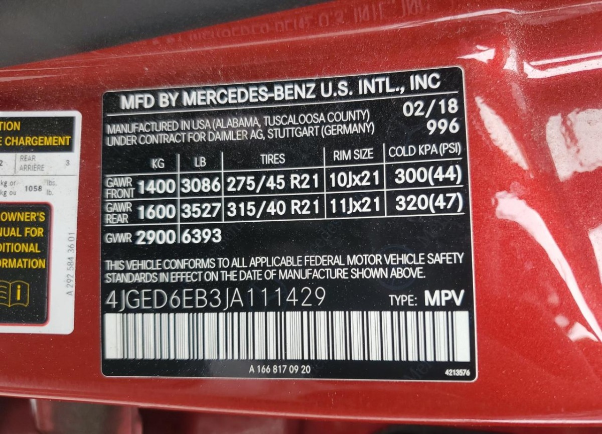 • VIN: 4JGED6EB3JA111429