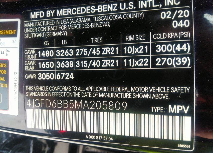 VIN:4JGFD6BB5MA205809