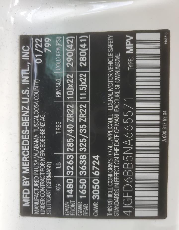 VIN:4JGFD6BB5NA665571