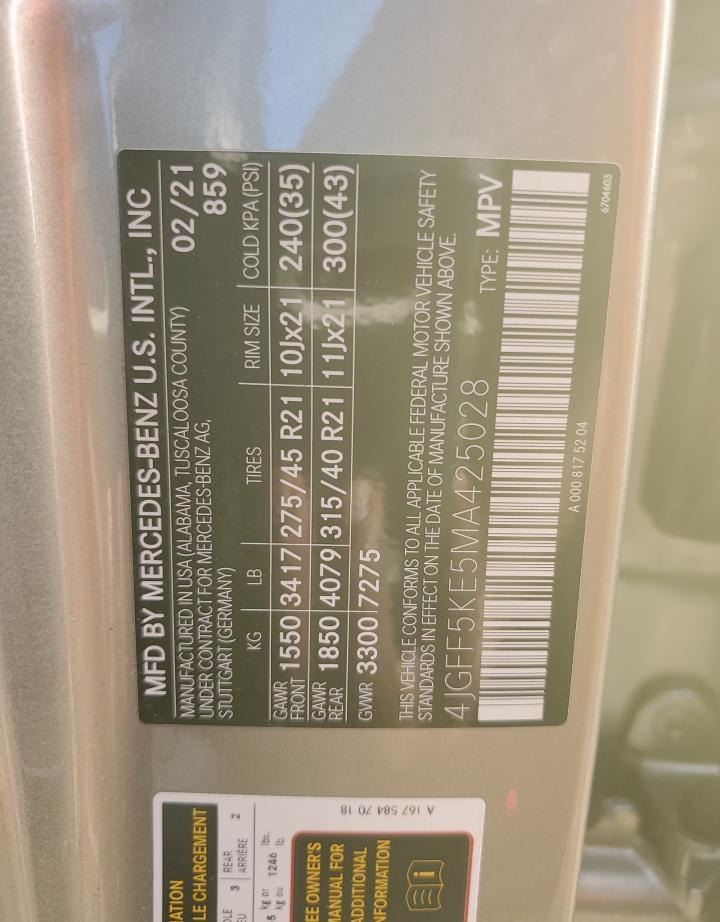 VIN:4JGFF5KE5MA425028
