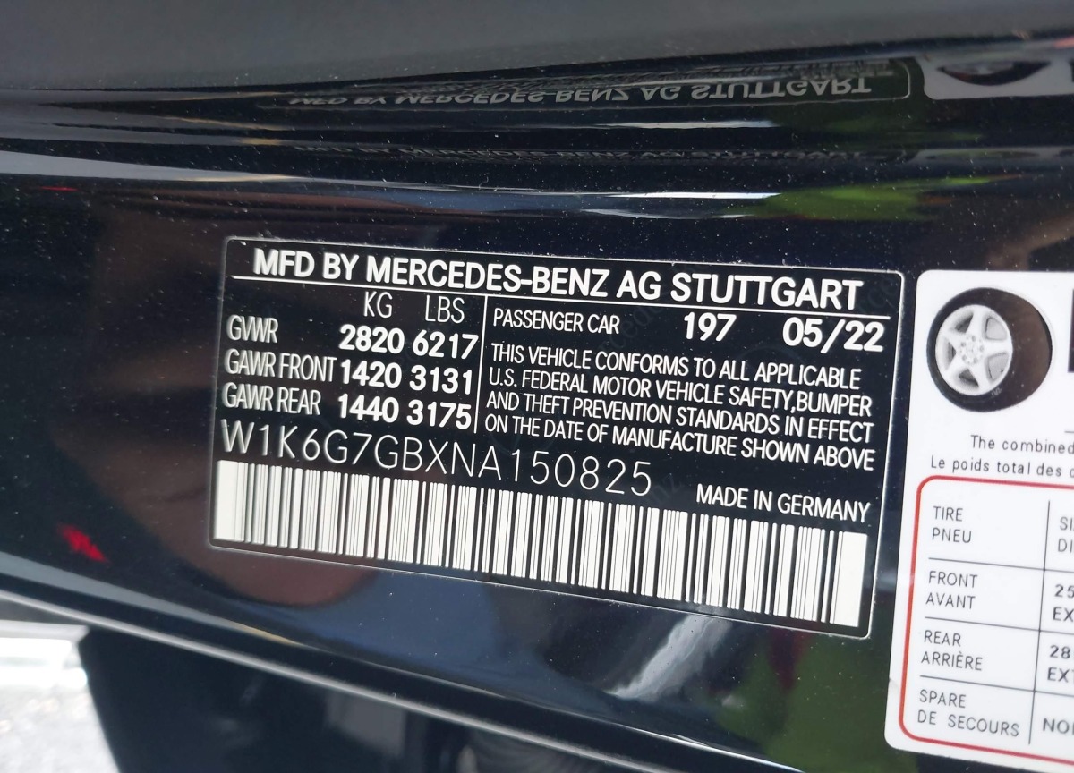 VIN:W1K6G7GBXNA150825