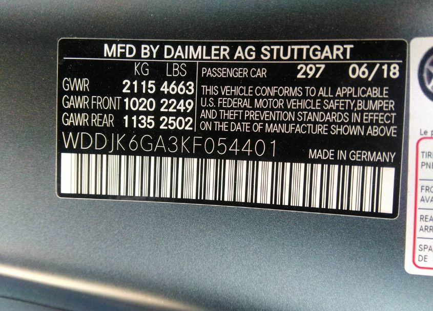 VIN:WDDJK6GA3KF054401