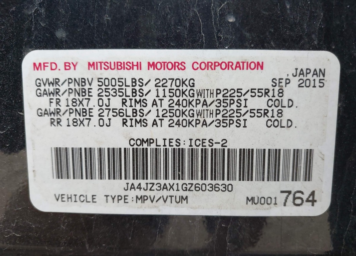 VIN:JA4JZ3AX1GZ603630
