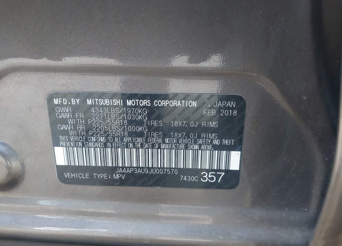 VIN:JA4AP3AU9JU007570