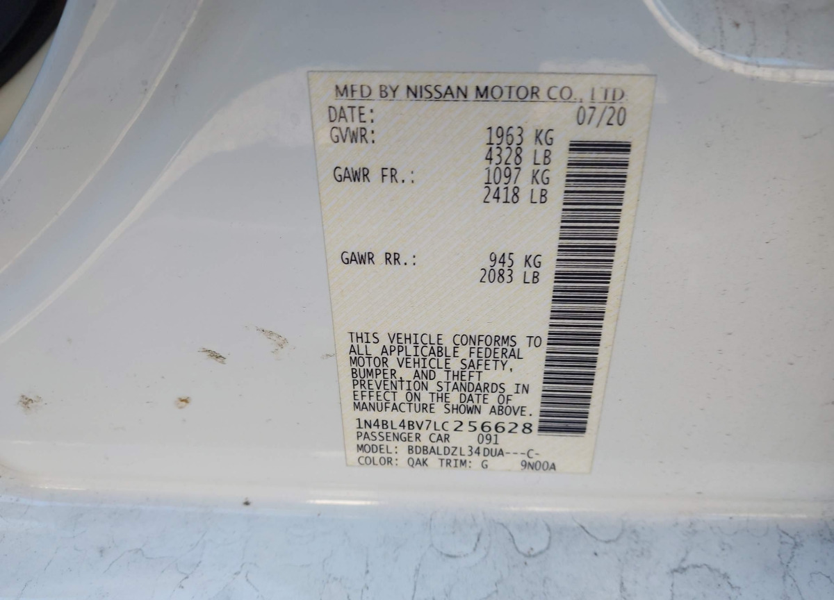 VIN:1N4BL4BV7LC256628
