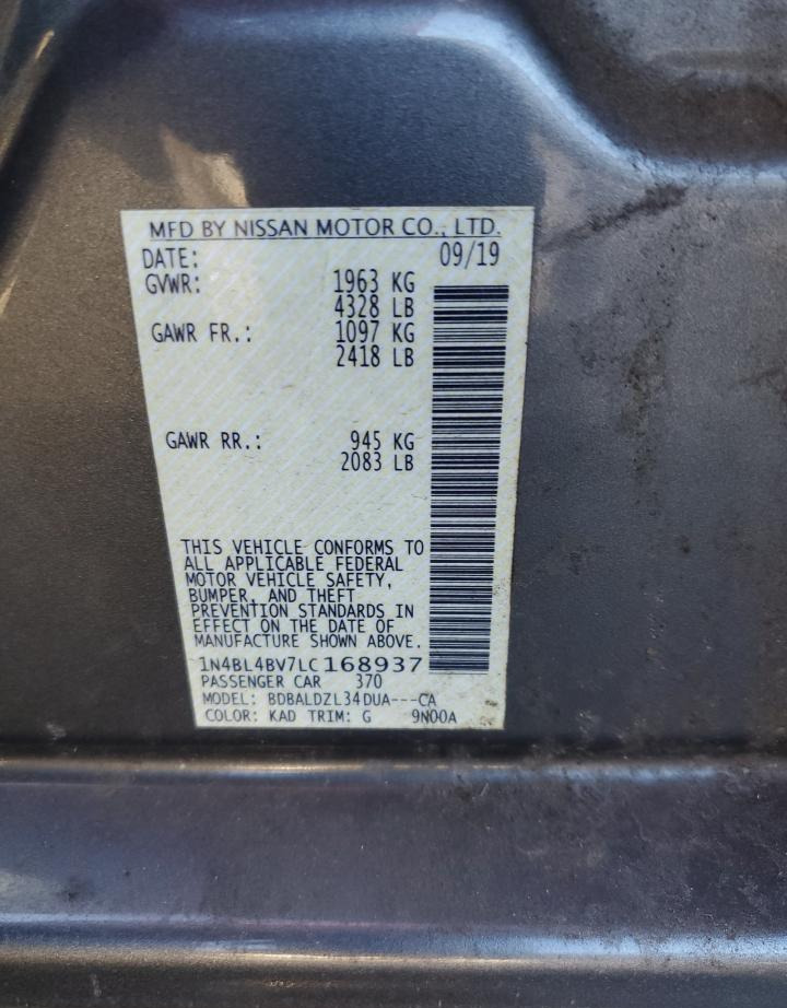 1N4BL4BV7LC168937 Nissan Altima 2020 Grey – history, photos, price