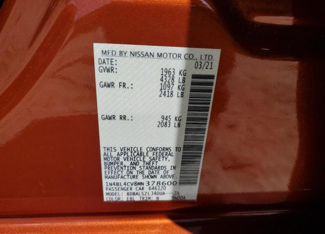 VIN:1N4BL4CV8MN378600