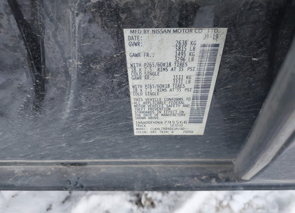 1N6AD0EV0KN795566 Nissan Frontier 2019 Black – history, photos, price