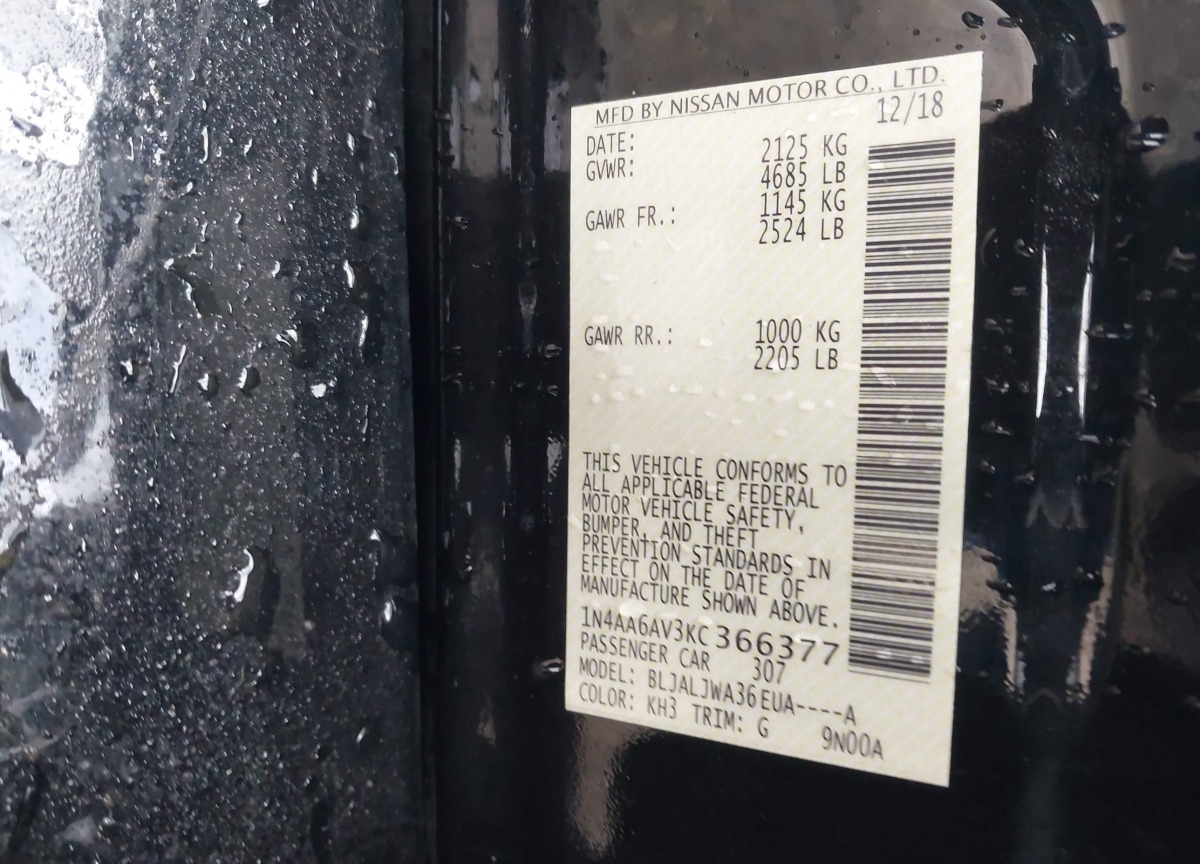 • VIN: 1N4AA6AV3KC366377