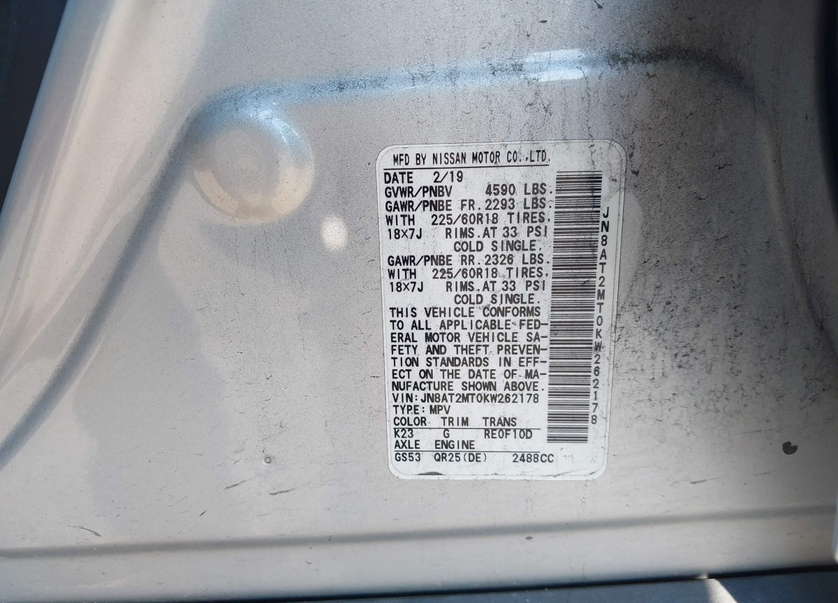 VIN:JN8AT2MT0KW262178