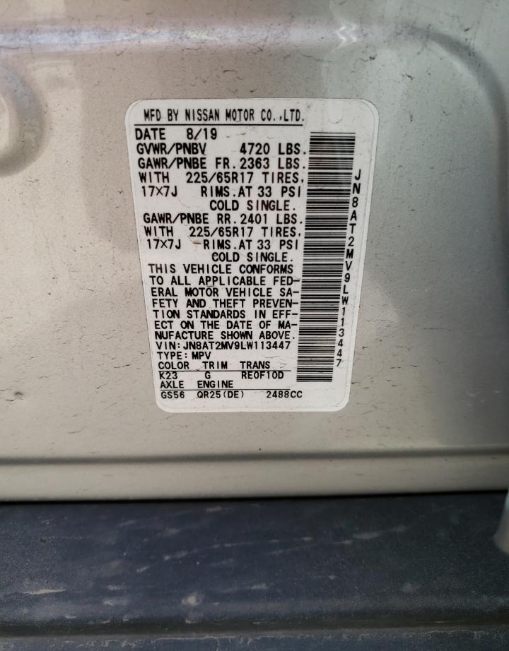 JN8AT2MV9LW113447 Nissan Rogue Sport 2020 Silver – history, photos, price
