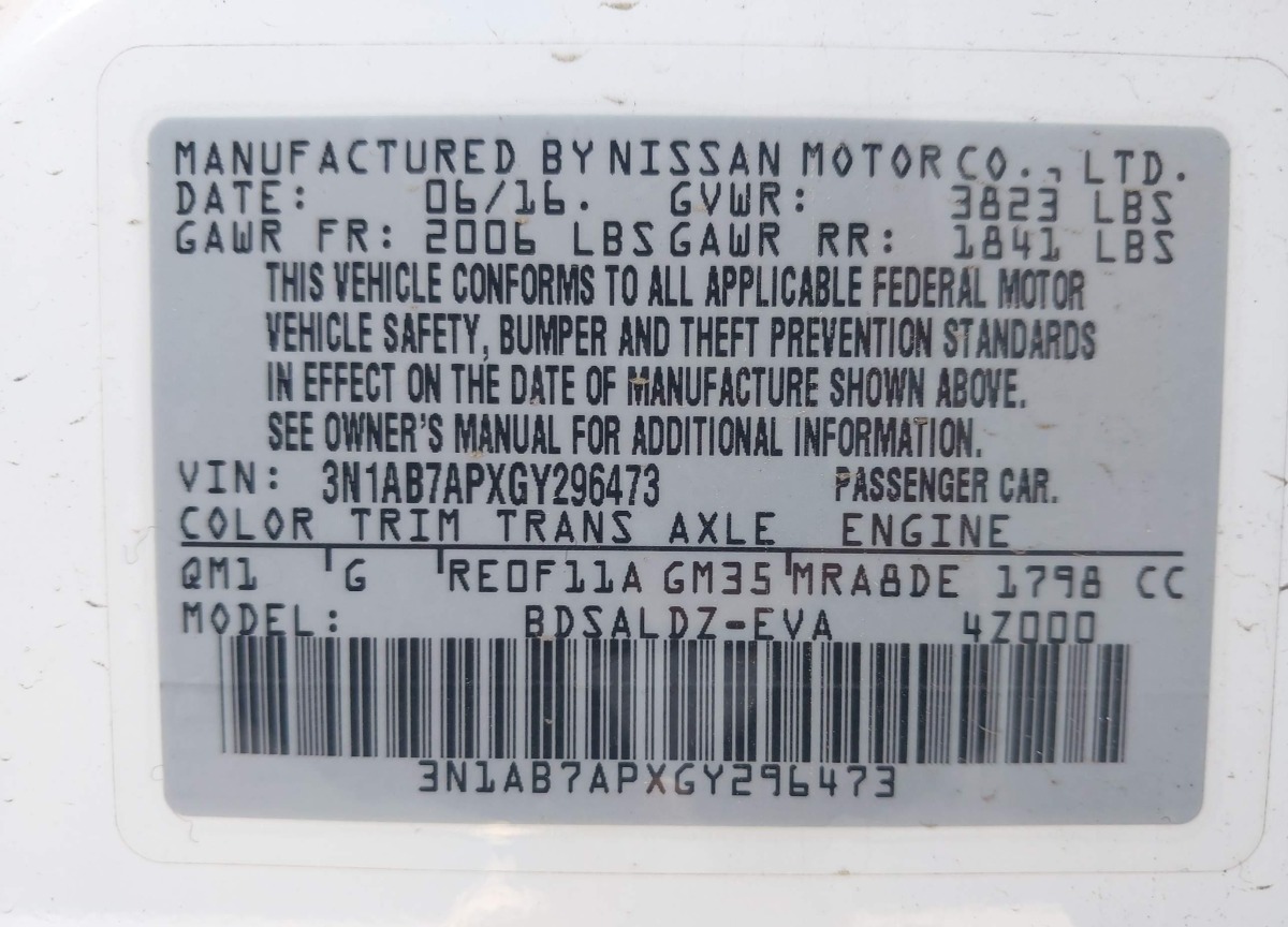 VIN:3N1AB7APXGY296473