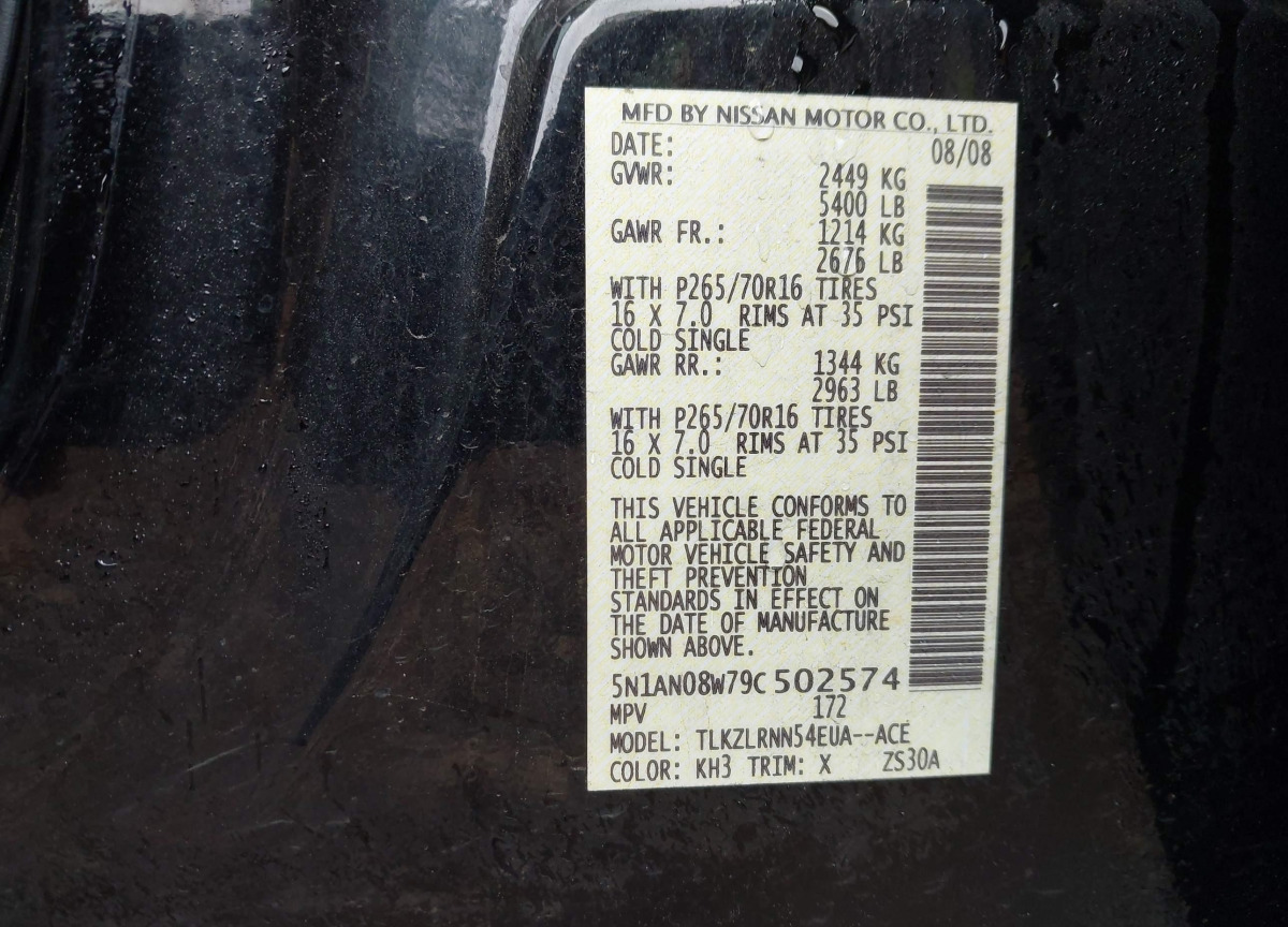 VIN:5N1AN08W79C502574