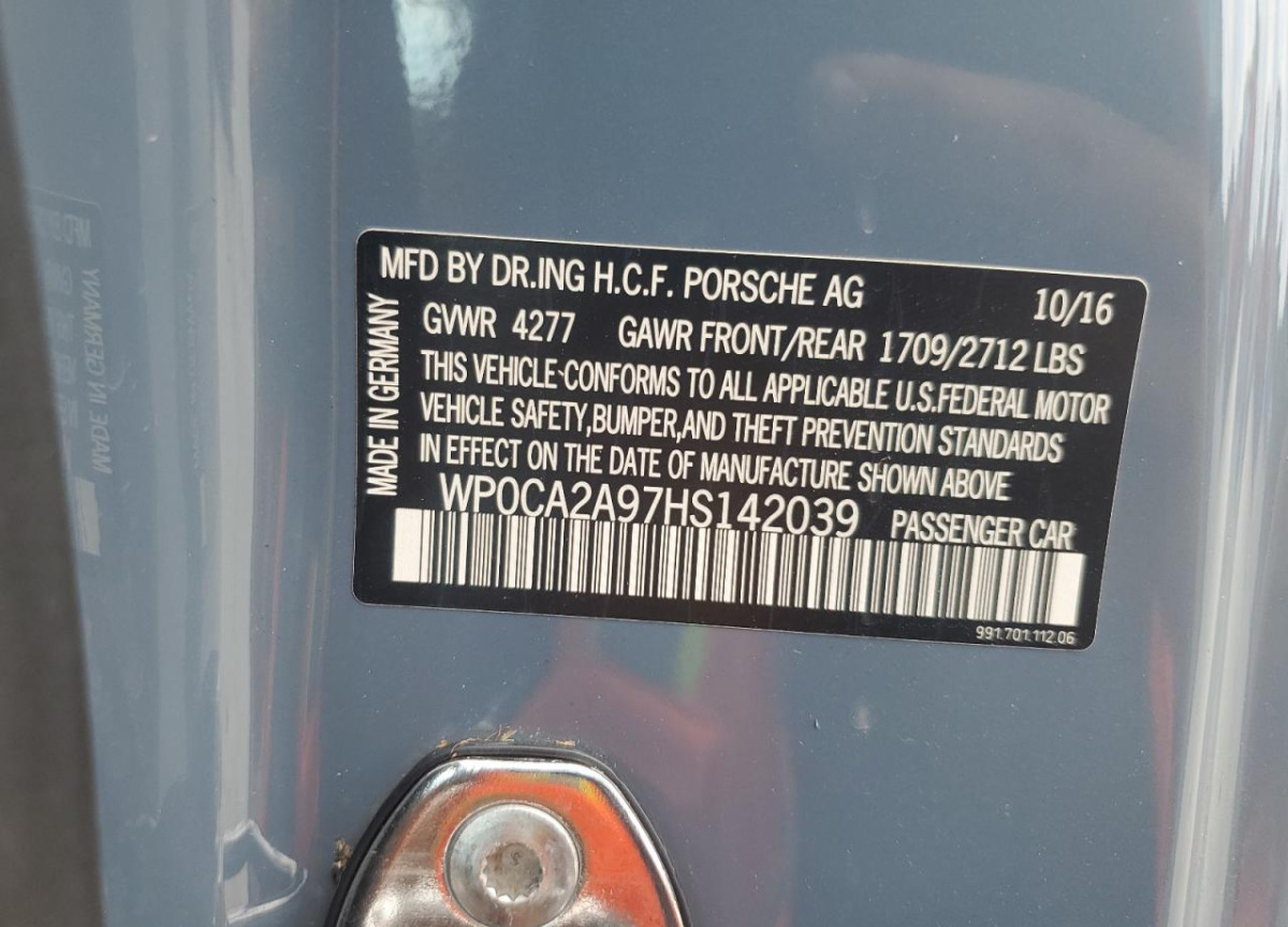 VIN:WP0CA2A97HS142039