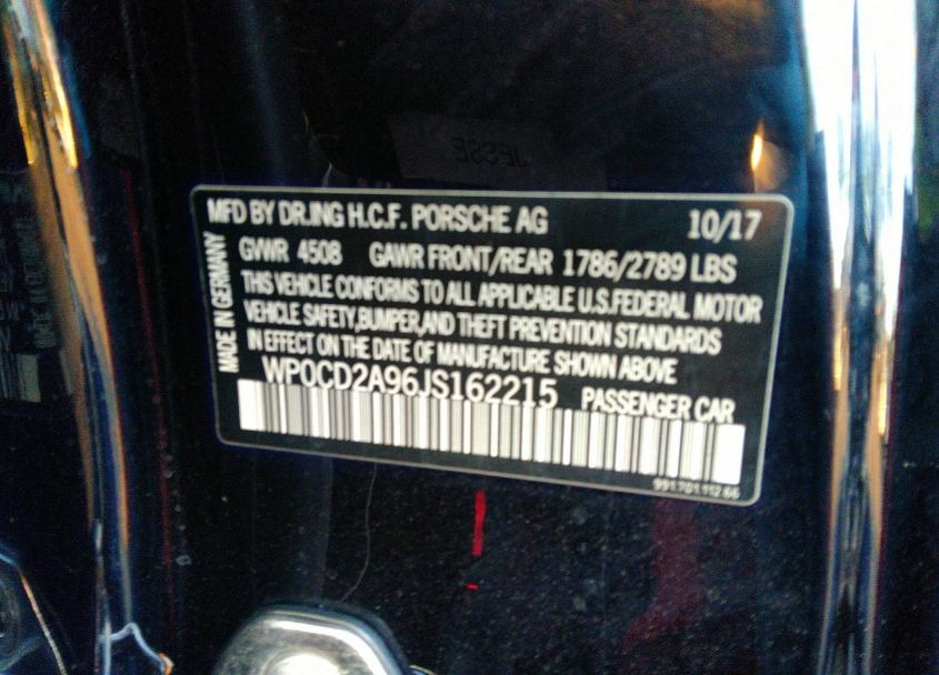 VIN:WP0CD2A96JS162215