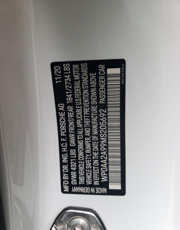 VIN:WP0AA2A99MS205692