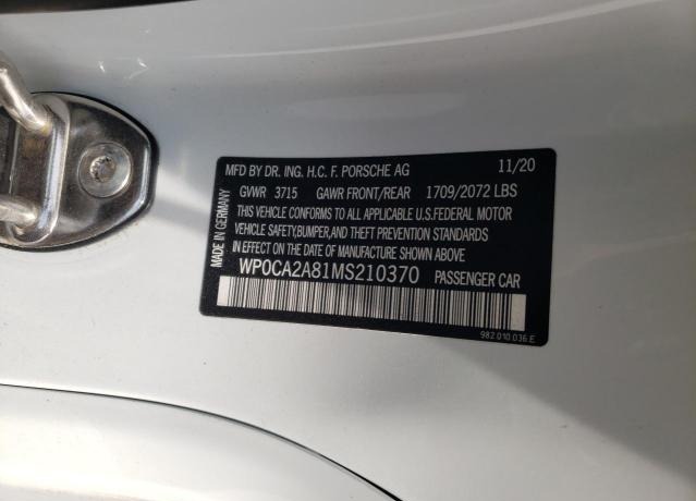 WP0CA2A81MS210370 Porsche Boxster 2021 White – history, photos, price