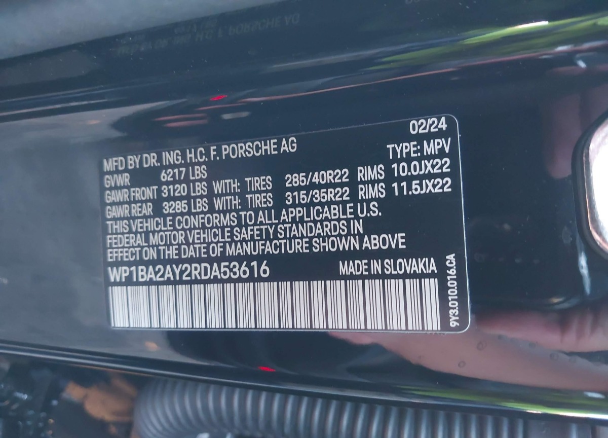 This Porsche Cayenne 2024 Black was originally purchased at one of the major insurance auctions in the United States or Canada. The vehicle history is tied directly to its VIN code, which makes it possible to track the origin, condition, and circumstances of the sale. The photographs provided represent the actual state of the car at the moment of auction and serve as an important visual record of its technical and cosmetic condition.