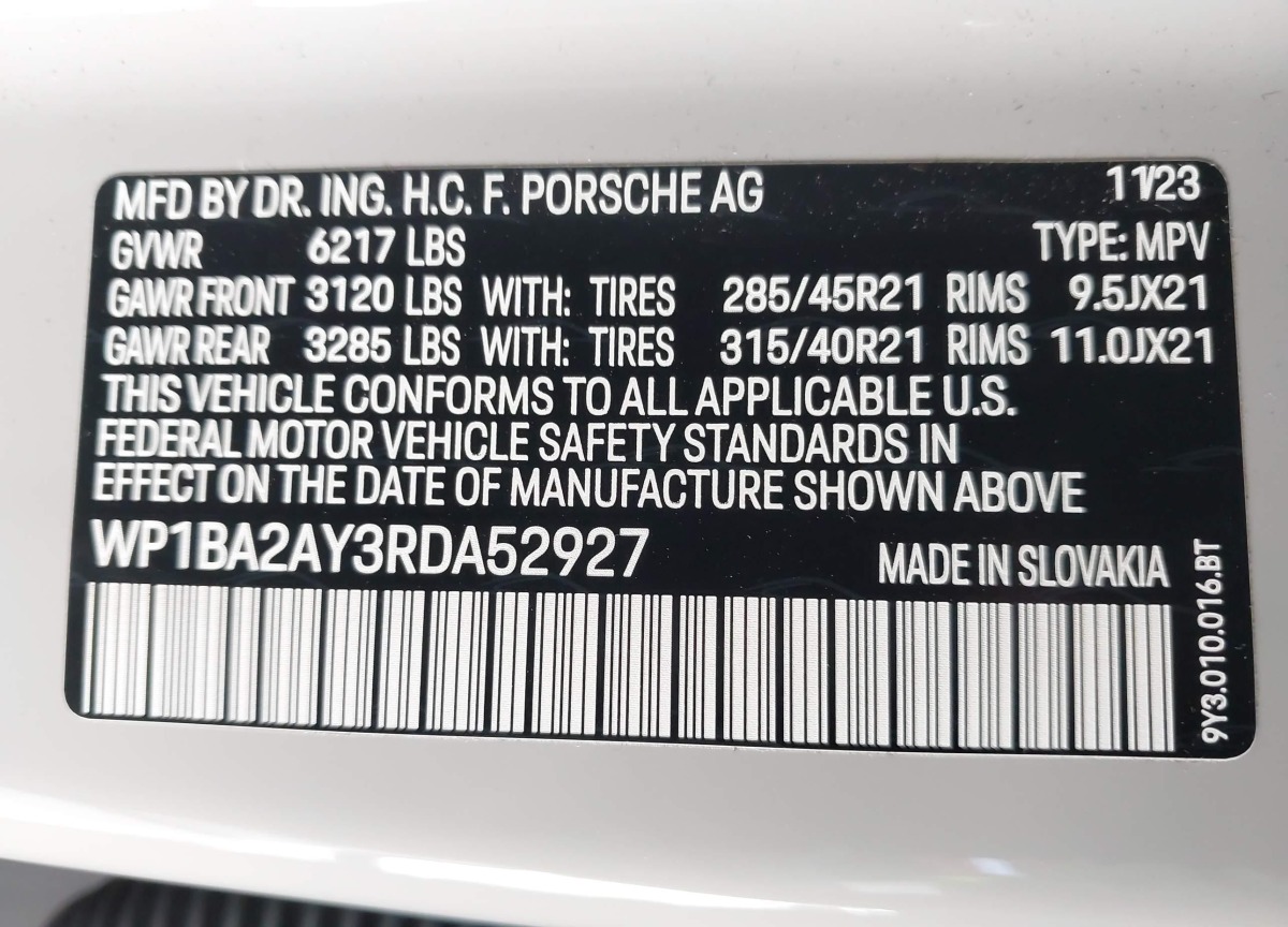 • VIN: WP1BA2AY3RDA52927