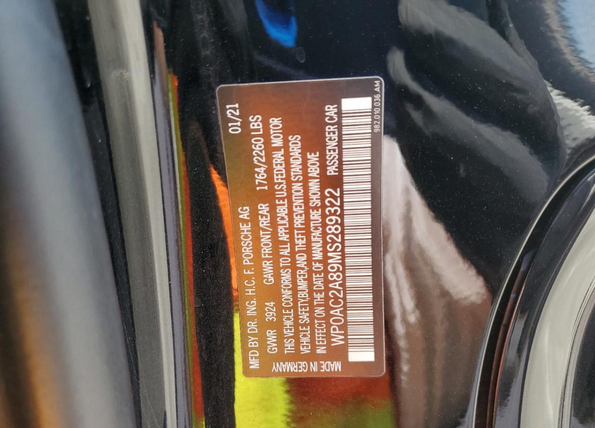 • VIN: WP0AC2A89MS289322