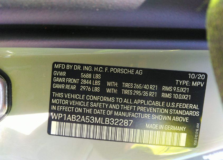VIN:WP1AB2A53MLB32287