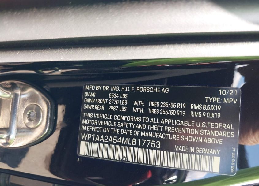 VIN:WP1AA2A54MLB17753