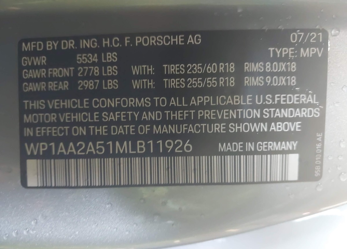 VIN:WP1AA2A51MLB11926