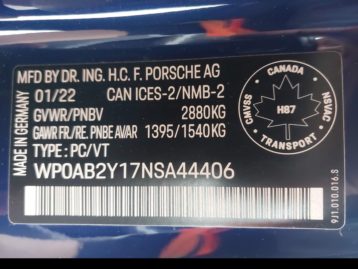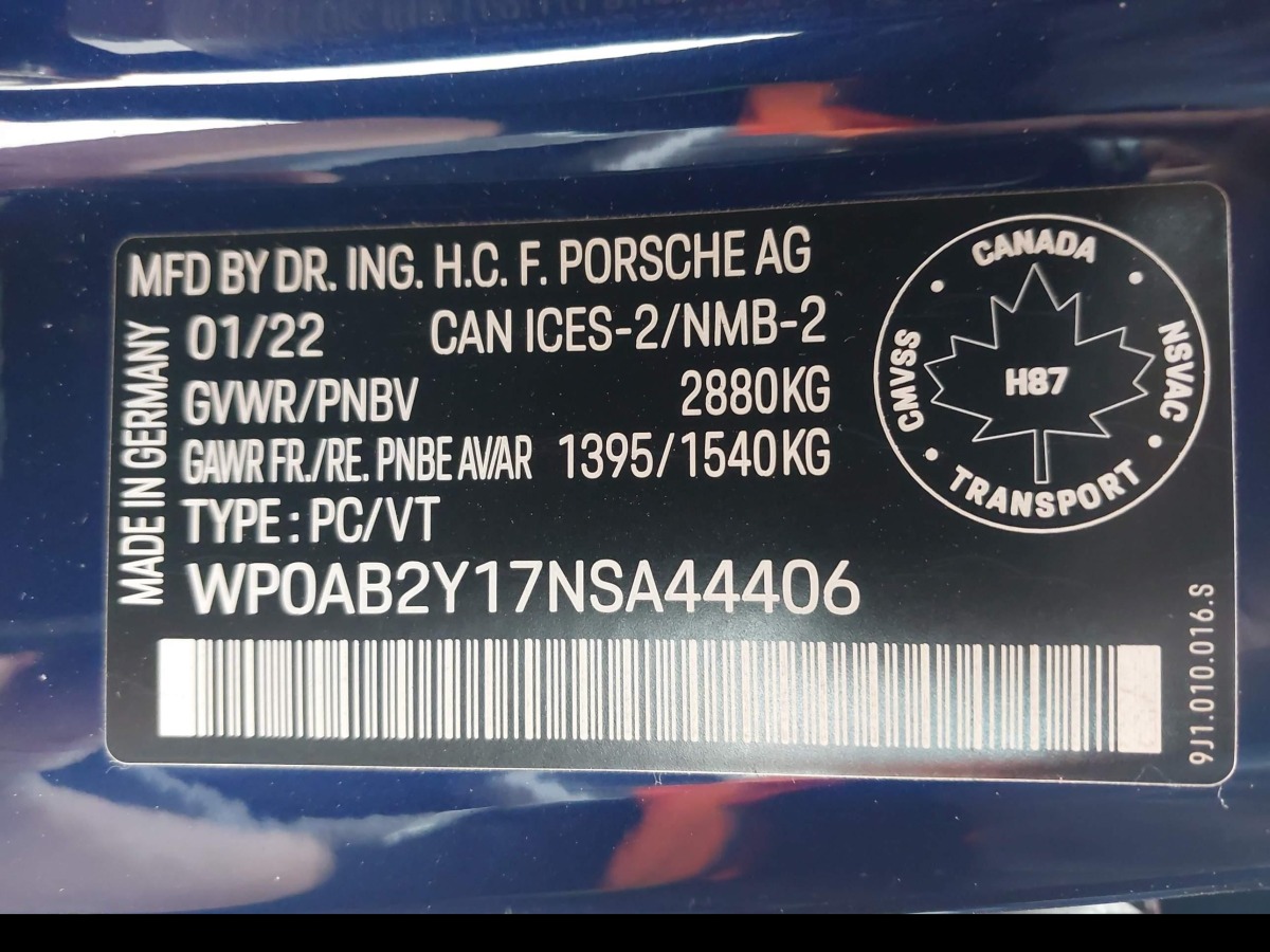 VIN:WP0AB2Y17NSA44406